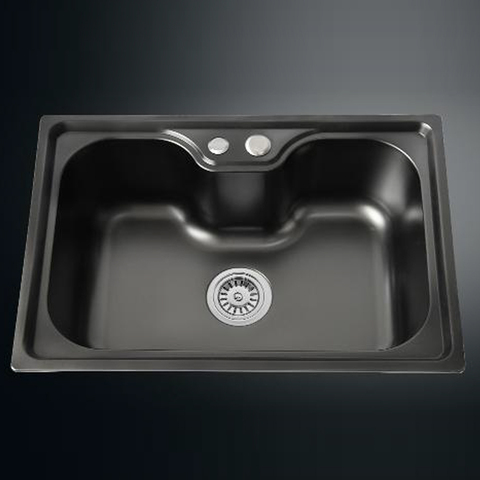 Bahan 304 dengan keranjang pengering di bawah konter Drop-in mangkuk tunggal persegi hitam Eropa wastafel dapur baja tahan karat